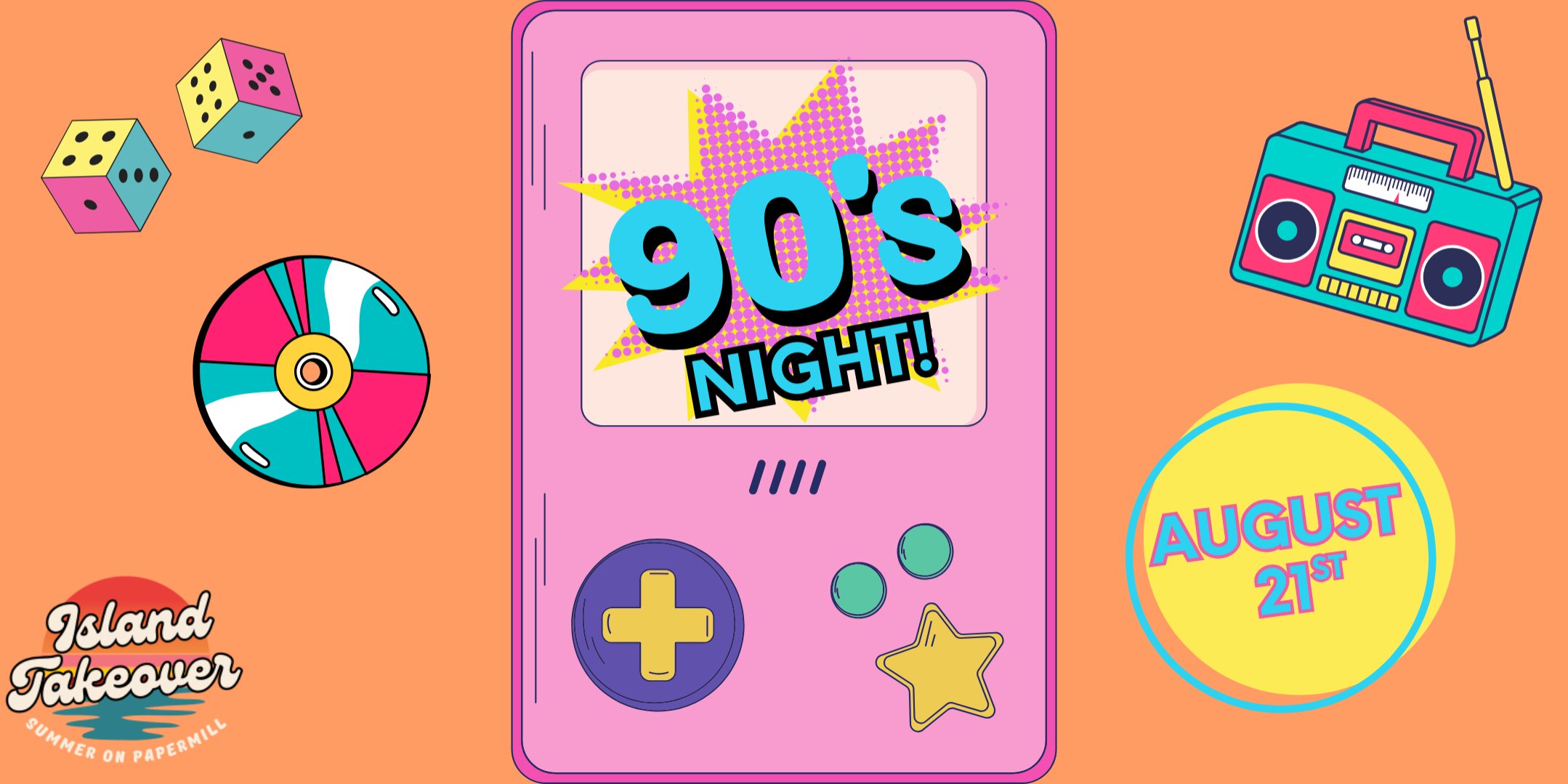 Throw it back at ’90s Night on the Island with nonstop hits from the decade of grunge, pop, hip‑hop, and dance. Relive the vibes and dance the night away at Papermill Island.