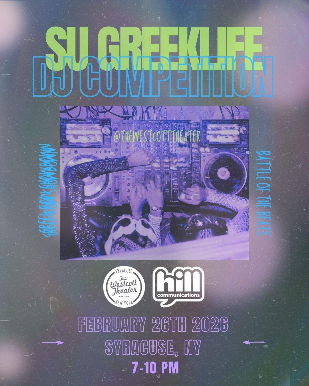ON THIS THURSDAY, Feb 26th from 7-10 PM, The Westcott Theater will be hosting its first Greek Life DJ Competition alongside Hill Communications. Come watch Syracuse's best DJs bring their sets and skills, and battle it out for the top spot for their chapter.