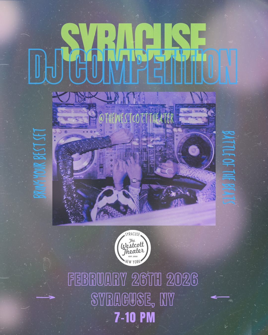 ON THIS THURSDAY, Feb 26th from 7-10 PM, The Westcott Theater will be hosting its first Syracuse DJ Competition. Come watch Syracuse's best DJs bring their sets and skills, go beat to beat, and battle it out for the top spot.